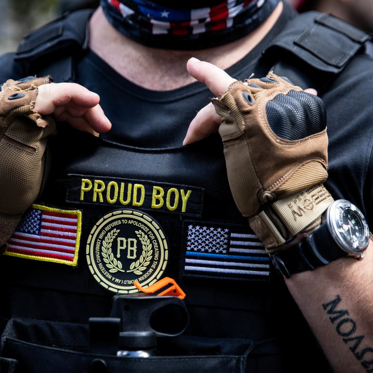 A video has emerged of a Proud Boys supporter warning that there will be a "civil war" if Donald Trump does not get re-elected in November and advises people to stock up on guns.